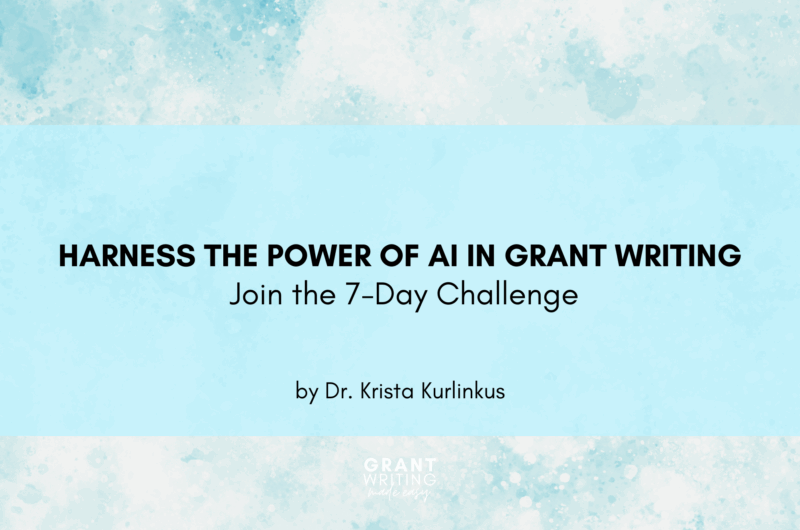 If you’re ready to give AI a spin, I’ve got just the thing for you. Join me for my 7-Day, Learn to Write Grants with AI challenge. It’s probably the easiest challenge you’ll ever take, but the payoff could be huge.